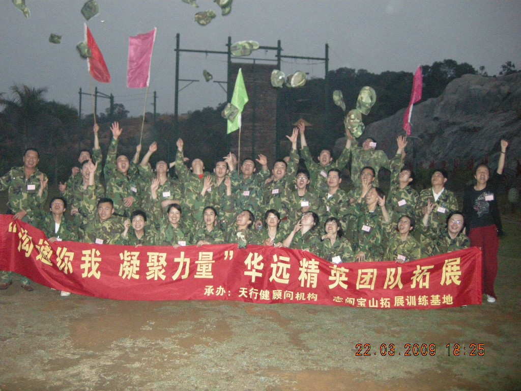 2009年3月21日、22日,廈門華遠集團全體員工至泉州寶山志閩拓展訓練基地進行了為期一天的拓展訓練。訓后全體人員深刻體會到:不可能是可以變?yōu)榭赡?,只要鎖定目標,堅定信心,勇往直前,就能實現(xiàn)自我超越。通過此次拓展訓練,加強了全體人員的執(zhí)行力、團隊凝聚力和企業(yè)向心力;同時也提高了團隊協(xié)作能力。培訓結束時“華遠,我愛你!”響徹天空,帽子飛揚,全體人員歡呼雀躍久久不愿離去。帶著這份激情,全體華遠人將同舟共濟更好地展開2009年華遠的新征程。