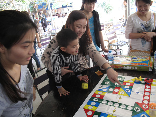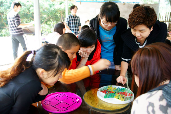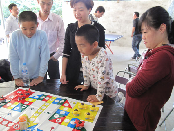 在第一輪飛鏢比賽中各組的表現(xiàn)就吸足了眾人的眼球。在比賽過程中,第一組采購部的兩位女英雄因人數(shù)原因不得不場場上陣,一天下來她們沒有做別的事,就是一直在比賽、比賽、還是比賽。功夫不負有心人,在她們不放棄的信念的堅持下,取得了兩個冠軍的好成績。第二組工程項目部發(fā)揮人多優(yōu)勢,奮力保住第一的位置,雖然在飛行棋這一輪中被小朋友們打敗,但也無傷大局。第三組秘書科的小朋友為了拿冠軍,當眾批評了著迷于麻將桌而不來幫忙的媽媽。第四組房產(chǎn)的部實力派乒乓球外援因迷路,在比賽結(jié)束后才趕到,雖然在飛行棋環(huán)節(jié)小朋友沉著應對,但還是因運氣問題最后落敗于第五組經(jīng)營部的“沉穩(wěn)哥”!“沉穩(wěn)哥”絕對是名不虛傳,父子兵輪番上陣,最終將比分由原來的第三名追至并列第一名。第六組財務部的媽媽們在拼圖環(huán)節(jié)全力投入,連自己的孩子去了哪里玩都顧不上管??!