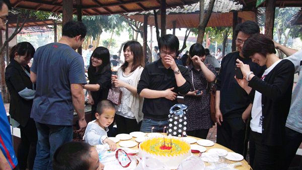 伴隨著燒烤的進行,四月溫馨的員工生日會也如期而至,壽星們在同事們的掌聲祝福中互換禮物,并在點滿蠟燭的蛋糕前許下自己的心愿,現(xiàn)場歡笑不斷,小朋友們端著壽星遞過來的蛋糕甚是開心。