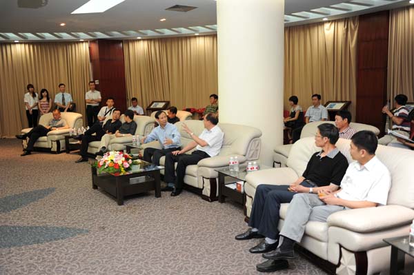 6月27日下午,前來參加“昆明·五華2010年廈門招商推介會”的昆明市五華區(qū)金幼和區(qū)長一行二十多人蒞臨我司總部華遠大廈考察訪問,我司董事長嚴文亮先生及總經(jīng)理助理、房產(chǎn)部經(jīng)理等人參加了接見會。嚴文亮董事長對遠道而來的嘉賓表示真誠的問候,向來訪的領(lǐng)導(dǎo)嘉賓介紹了我司的發(fā)展歷程,并就我司正在建設(shè)的南昌和平國際大酒店項目和昆明項目的建設(shè)情況向金區(qū)長做了匯報。會后,金區(qū)長向嚴文亮董事長贈送了紀念品,代表團一行人隨后參觀了我司總部的辦公區(qū)域。